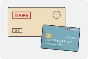 当金庫で申込データを受付後、おおむね1~2週間後に「キャッシュカード」および「個人インターネットバンキングお客様カード」を転送不要郵便の簡易書留で郵送いたします。